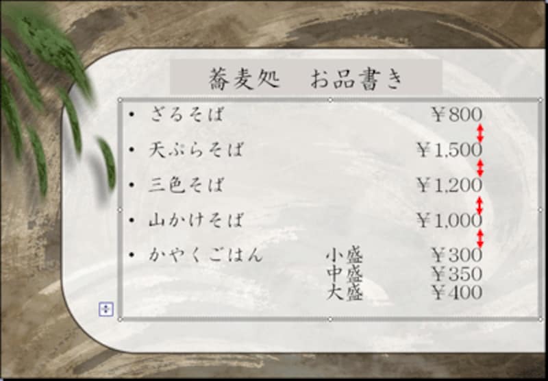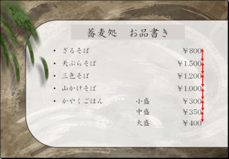 すると、どうでしょう。「かやくごはん」の3行はくっついたまま、メニューの上下の間隔を広げることができました。すべての行の間隔が広がるよりも、関連項目がひとめで把握できますね。
