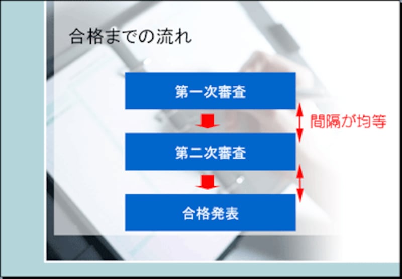 パワーポイントの流れ図作成3.図形の間隔を均等に揃える