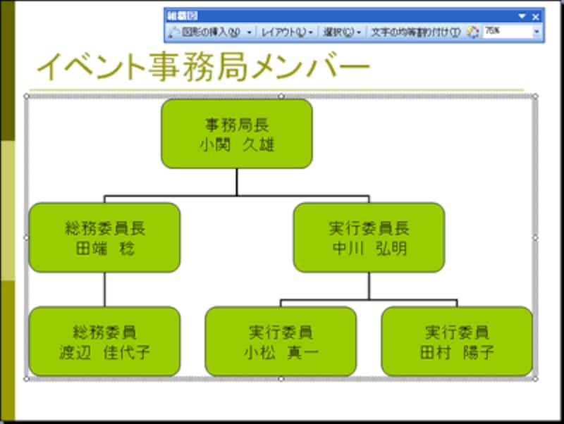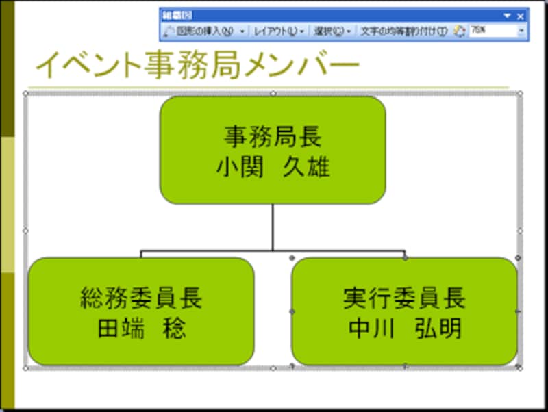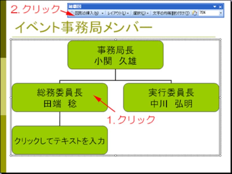 | ここでは、「総務委員長」の図形を選択してから図形を追加した |