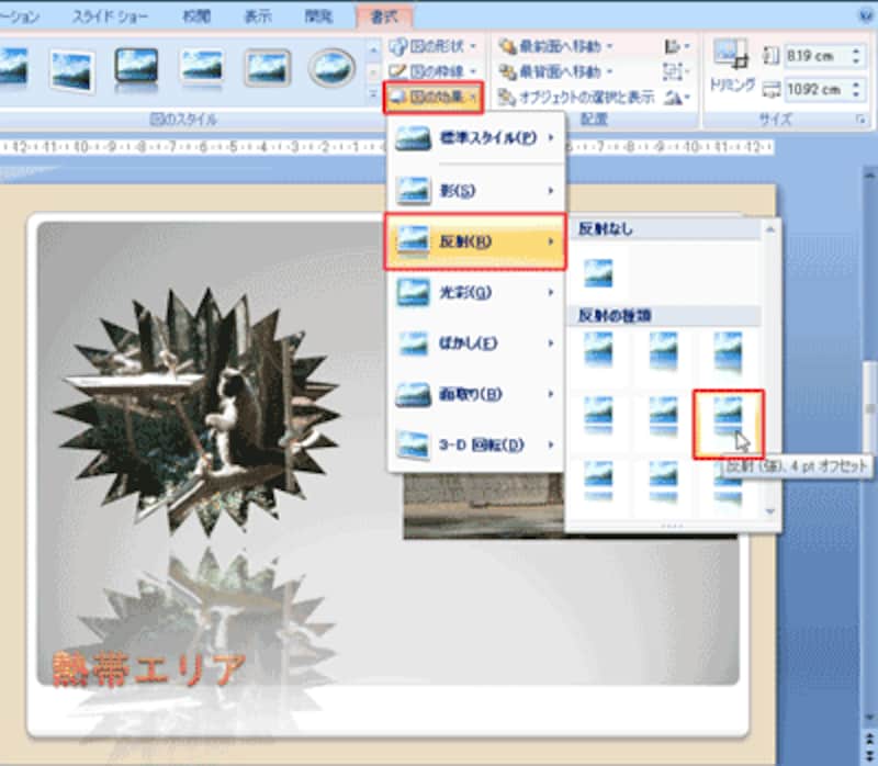 写真の切り抜きに加え、1ページで紹介した「図のスタイル」や「図の枠線」、「図の効果」と組み合わせて使えば、さまざまな写真の加工を楽しむことができます。