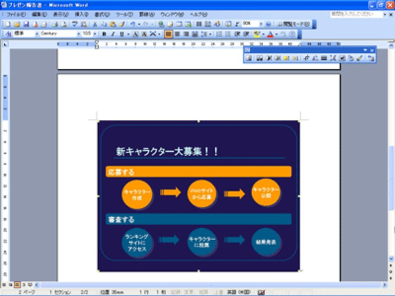 Word文書の中に、PowerPointのスライドを画像として貼り付ける