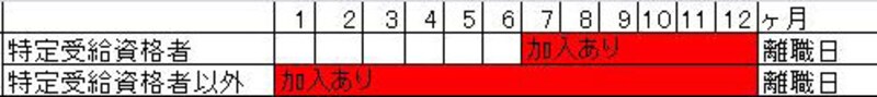 | 失業保険の受給資格があるかどうかは、それぞれ、赤く塗りつぶした期間に加入していれば資格あり |