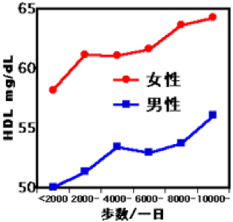 | 歩くと善玉コレステロールが確実に上がります。 |