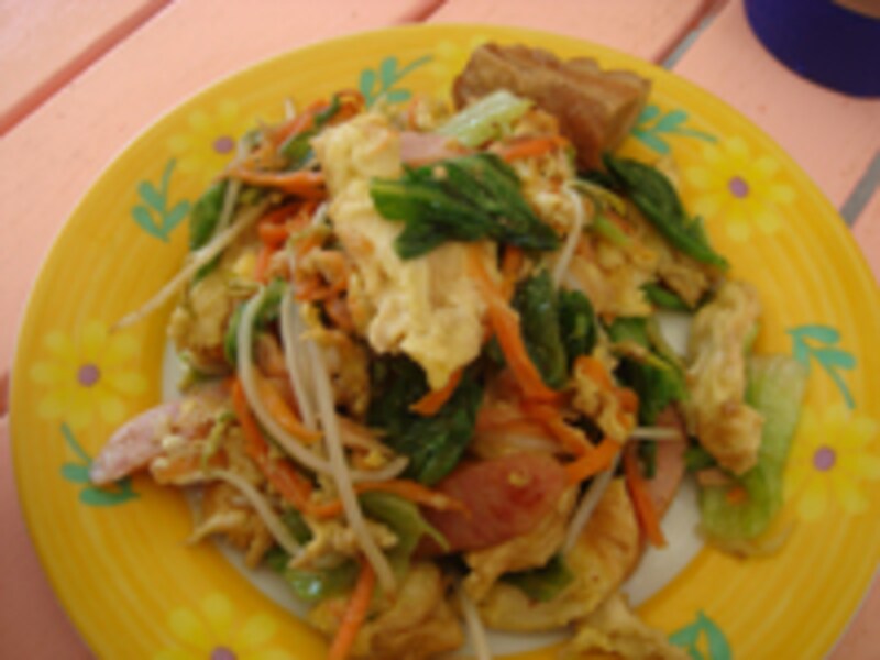 ●豆腐チャンプルー:大きめにちぎった豆腐を炒めたものです。参考レシピはこちら。