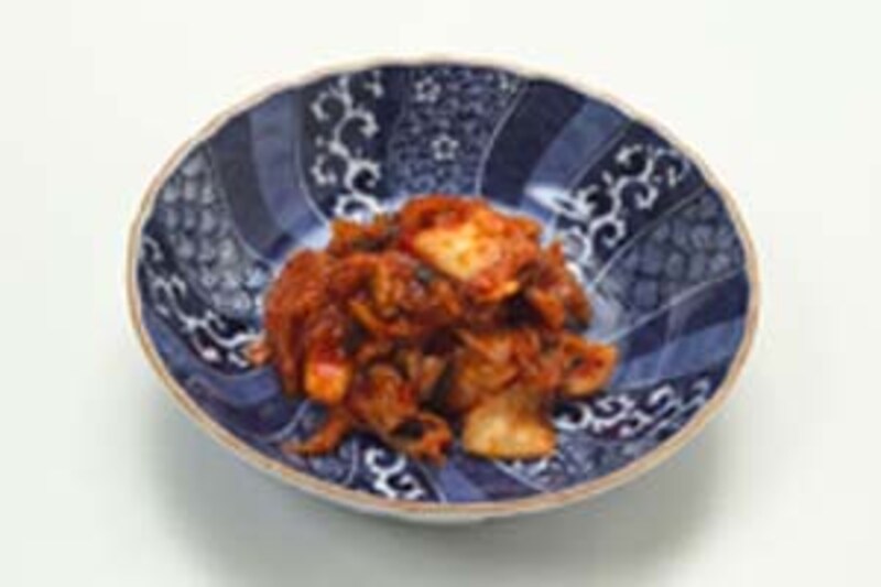 キムチのトウガラシには辛味の成分、カプサイシンが含まれます。カプサイシンは脂溶性で、体を温める作用があります。英語で”hot”と言われる所以ですね。(ちなみに余談ですが、同じ辛味でもわさびやからしなどの辛味は水溶性のイオウ化合物で英語では”sharp”と言われます。)新陳代謝亢進による痩身効果が期待できます。また、減塩効果が期待でき、塩分は日本のお漬物のなんと半分くらい!胃腸の刺激による食欲増進作用もあります。