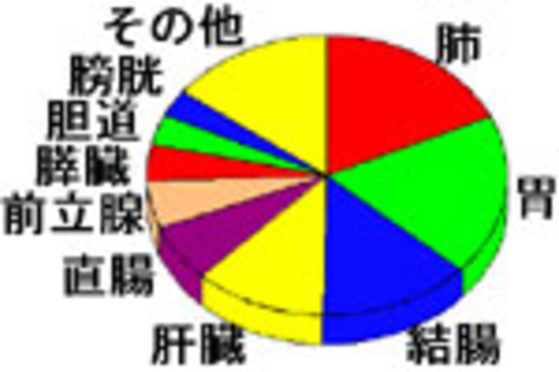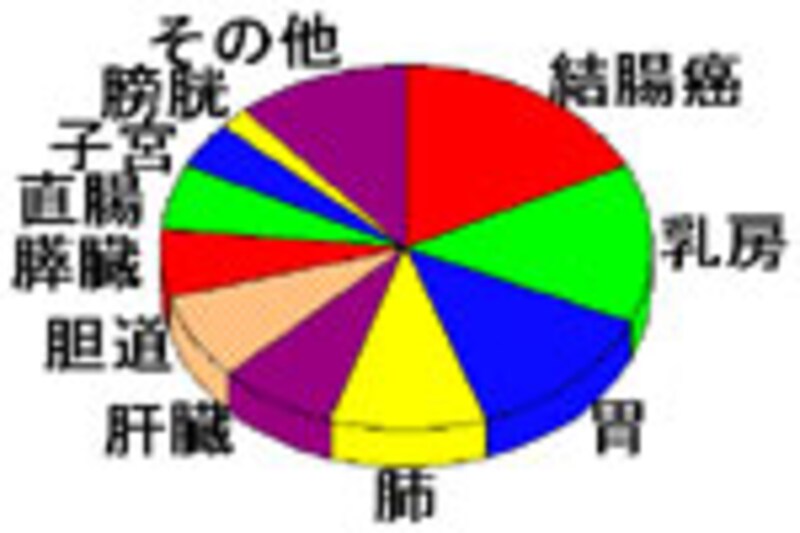 女性では1位結腸癌、2位乳癌、3位胃癌、4位肺癌、5位肝癌、6位胆のう癌・胆管癌、7位膵臓癌、8位直腸癌の順となります。