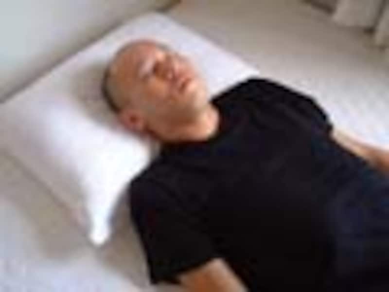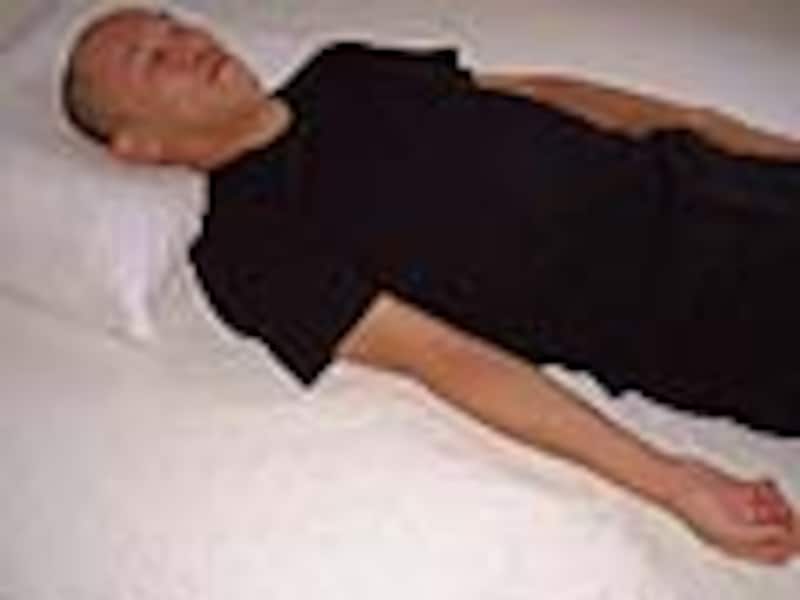 ゆったりとした衣服で横になり、全身の力を抜く。軽く目を閉じ、大きな息をひとつしてからはじめよう。