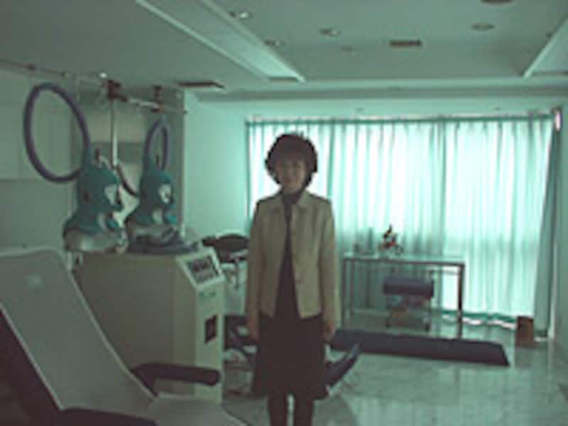 | これが高気圧酸素セラピーのカプセル「オアシスO2」。「エアープレス銀座店」にて |