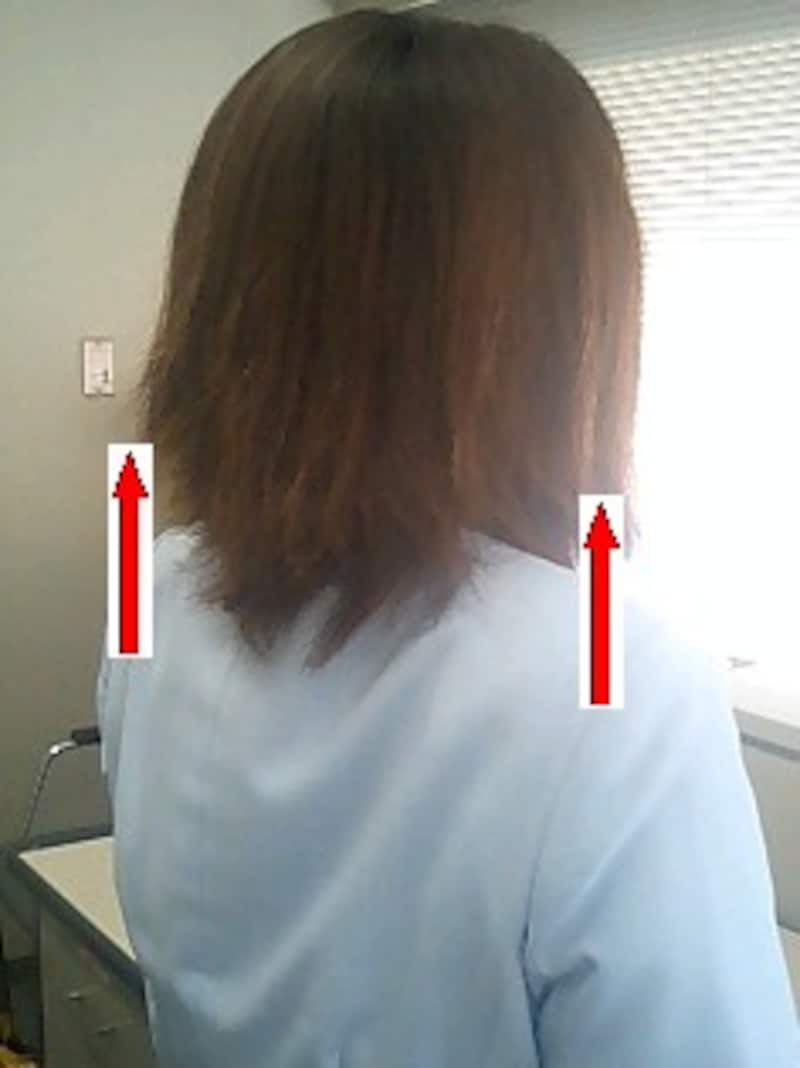 1.息を吸いながら両肩を上げ、首をすくめるようにする