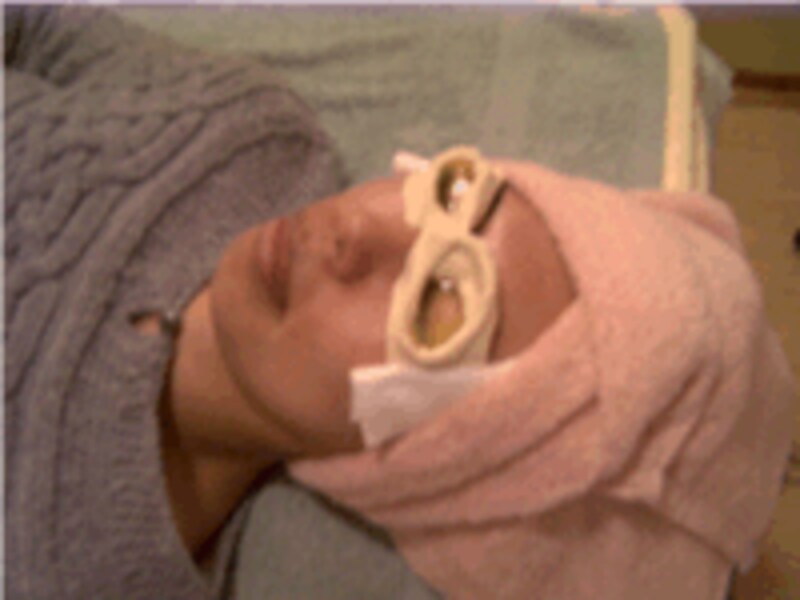 Mさんの感想:オイルは体温に近い温度なので、目を開けてもオイルが入ってくる違和感があまりなく、黄色っぽいボンヤリとした視界が広がり気持ちがいいです。