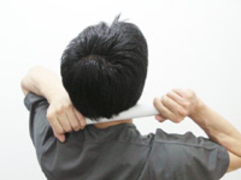 肩こりがひどくて痛みに変わってしまったケースでは、それが慢性化することで、少しの負荷であっても、ものすごく痛く感じてしまうことがあります。そのため、この少し強めのセルフマッサージは、芯を首に押し当てる強さや、位置を変えるなどして、微妙なのですが調整をして下さい。![]() | ![]() | ||