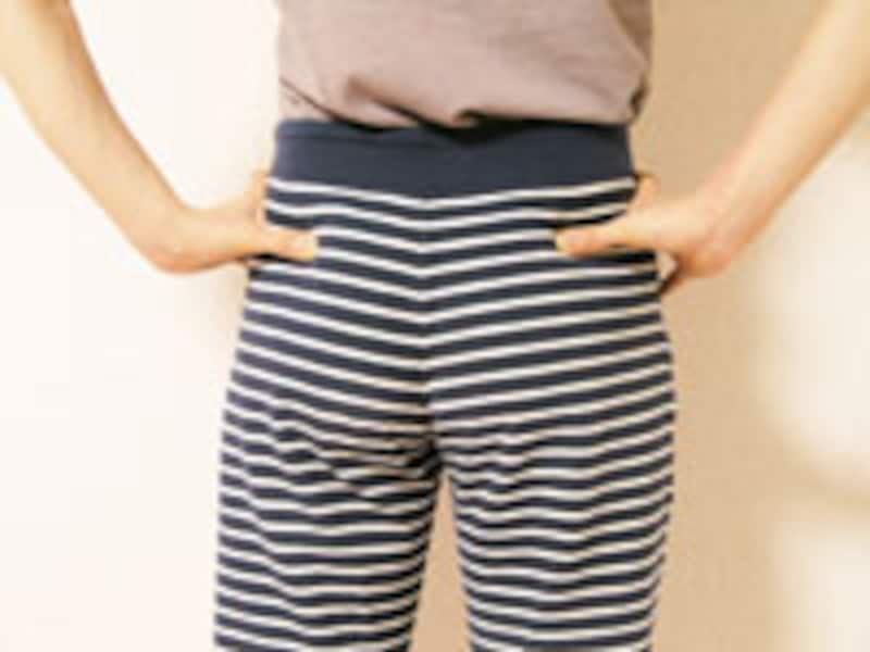 腰回しの要領が分かったところで、今度は、お尻の筋肉に刺激を加えながら、同じように腰を回していきます。お尻の筋肉を親指で押したときに、痛気持ちよく感じるところがあると思います。その部位に、親指を軽く当て、先ほどの要領で腰を回していきます。腰が右側へ回る際に、左の親指で軽くお尻の筋肉に圧をかけます。強く押すと、親指が痛くなるかもしれませんので、心地よい程度の圧し加減で。反対に、左側へ腰が回る際は、右親指でお尻の筋肉を圧してみましょう。