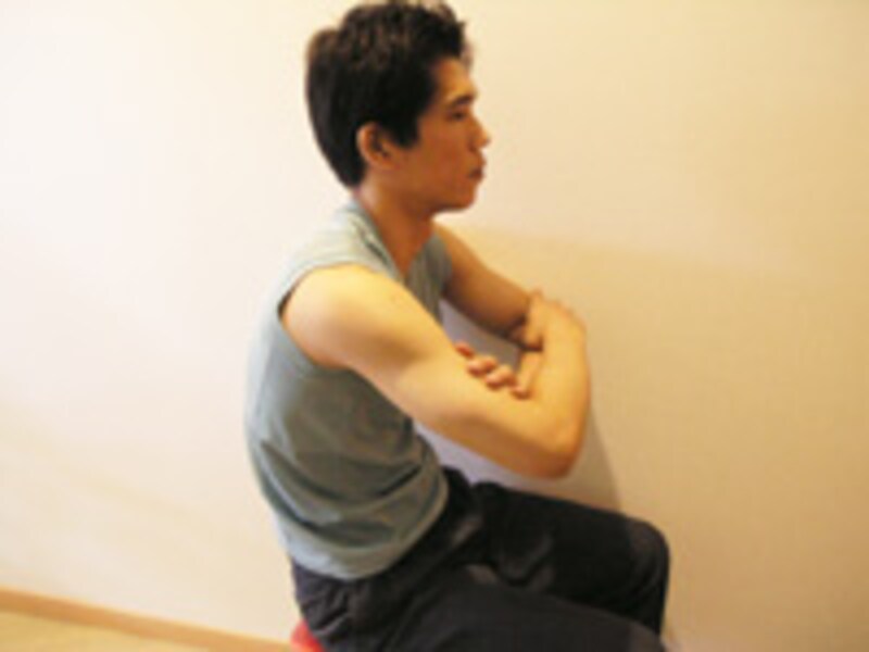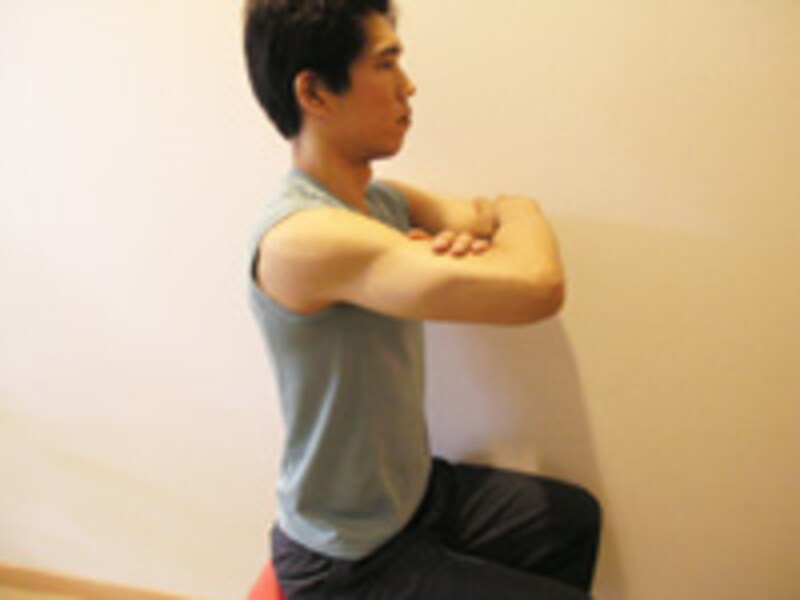 | 1 | ご自身で、これが一番背スジが伸びている、という座り姿勢を作り、床に対して水平に両手を組みます。この時、この座り姿勢で腰を支えるために、筋肉が頑張っている状態です。 | 2 | 腰の力を抜いてみます。この時、デスクワークが続いた時の姿勢に近いものになっているかと思います。水平に組んでいた腕の下がりが大きいほど、日頃の腰部の丸まりに要注意です。そして再度、姿勢を良くするように背スジを伸ばしてみましょう。組んだ腕も水平の位置に戻りましたか? |