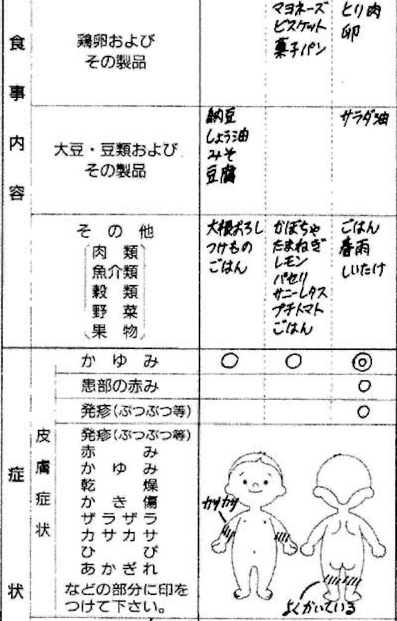 | 食べた内容と湿疹の程度を書きます(クリックすると大きくなります) |