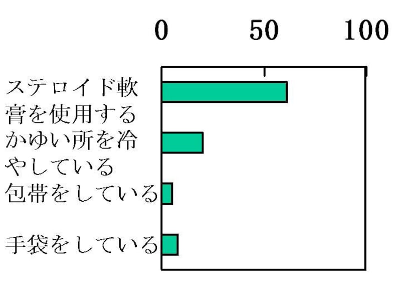 と、かゆみの対策としてステロイド外用薬を使用している割合が多かったです。医療機関に来ている人を対象にしているので、多いのかもしれません。ステロイドの副作用について心配しているか聞きました。