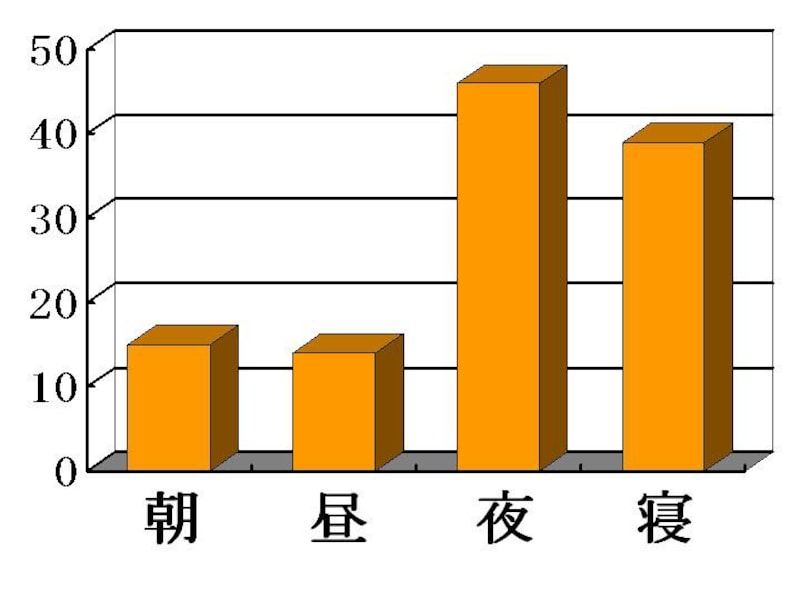 「夜」と「寝ている時間」に多いという結果でした。昼間は、何かに集中できていれば「掻かない」のかもしれません。
