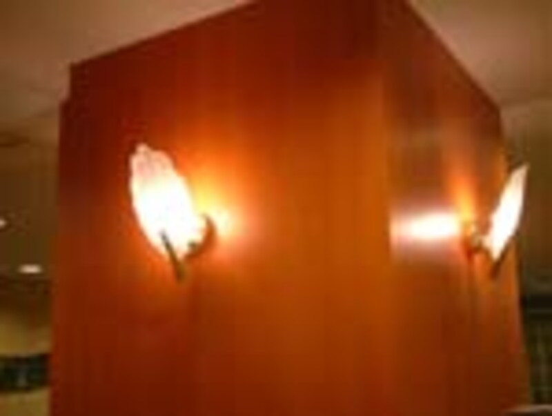 森のイメージなので待合室のベンチも木製。鳥の鳴き声がBGMです。