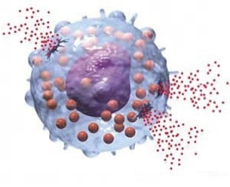 白血球の一種。主に、アレルゲンを攻撃する役割を持ちます。後述の肥満細胞と似ています。