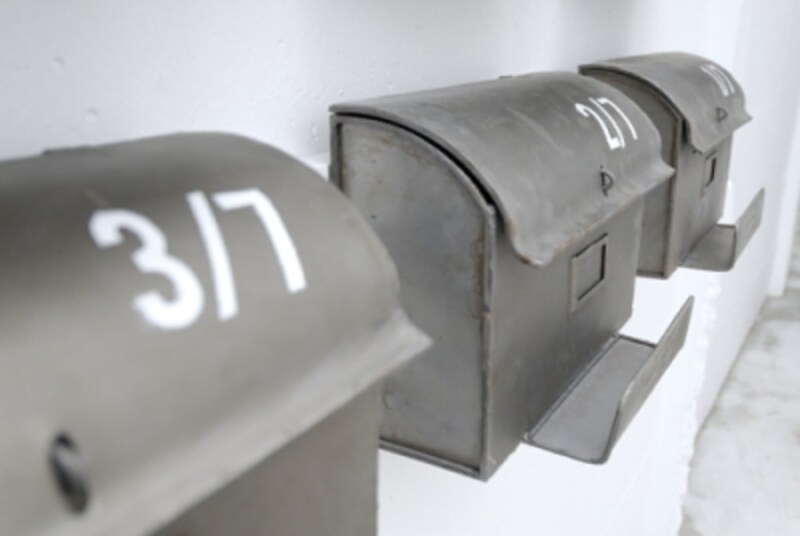 | 共用部には、レトロなレターボックス。自分の部屋番号がスプレーされている。 |