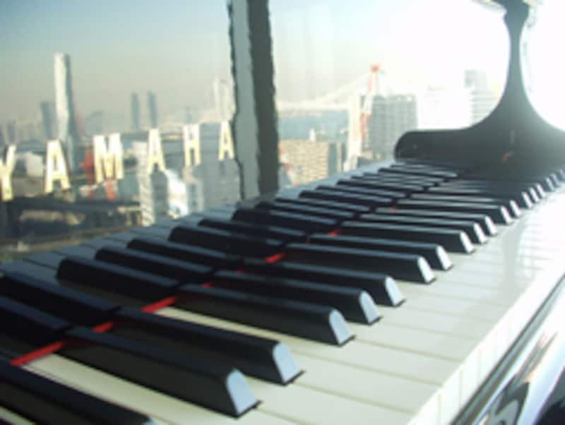 ■東京タワーやレインボーブリッジの光をみながら、ピアノ演奏を聴いて一日の疲れが癒せる共用ラウンジ。朝は、コーヒーにパンのサービスが受けられ、夜はカクテル等アルコールも飲めるそうです(但し、お酒は有料予定) |