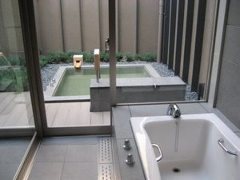 | スイートルームの浴室から続く専用の露天風呂 |