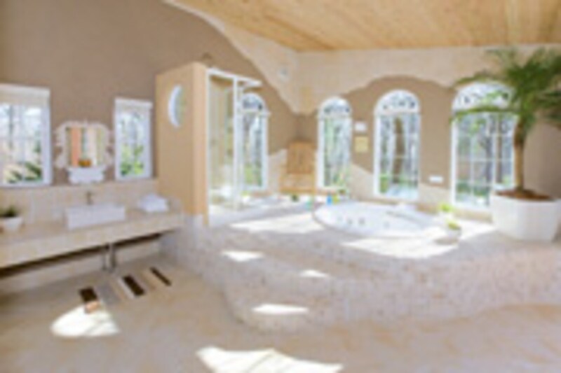 シンメトリックなデザインが印象的なアメリカ棟続いてアメリカ棟は、古都「サンタ・フェ」をイメージしたものだそうで、ピンク系の外観、シンメトリックなデザイン、中にはいればパティオがあります。パティオを囲む間取りは、明るく開放的。長いウッドデッキも設置され、その先には滑り台があるなど、小さなお子様も楽しめるプランです。リビングにはマキストーブが置かれ、木造平屋という造りもうれしいですね。間取りは2LDKです。土地面積は1607平米、建物面積は110.75平米もあります。明るいひざしがふりそそぐ、開放的なリビング前のページへ1234次のページへ
