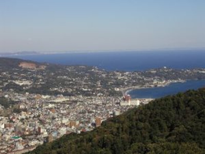 | 緑豊かな真鶴半島から相模湾を眺める |