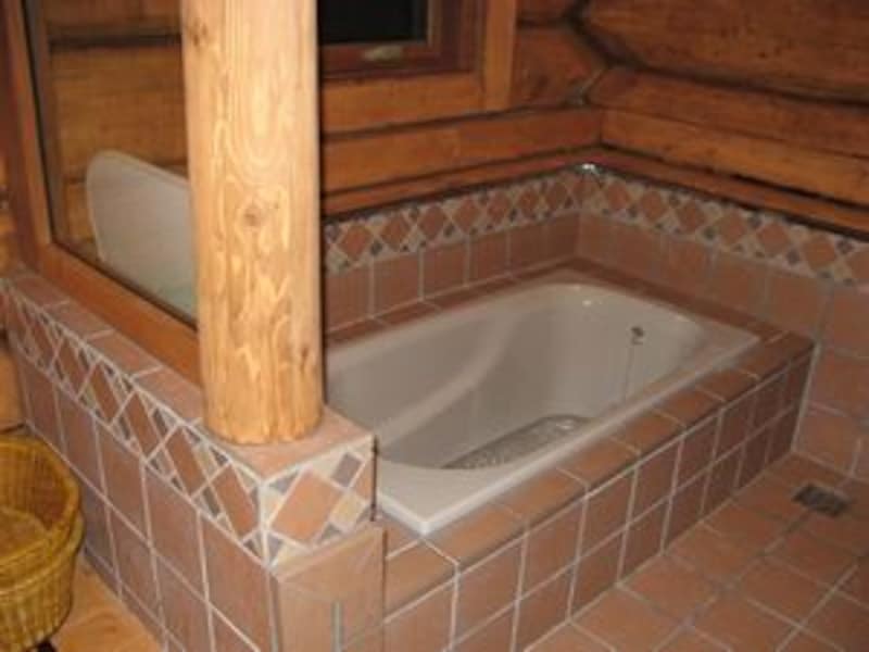 このまま朝までおしゃべりしていても、誰からも文句はないはず。とはいえ、翌日のゴルフもあるので、お風呂に入ることに。このお風呂がとても広い。浴槽と洗い場だけで3畳はありそうです。こんなに広いと、冬など寒いのではと心配しましたが、なんと床暖房まで付いていて至れり尽くせり。床暖房を少しつけてみましたら、とても温かくて、いい気持ちでお風呂に浸かれました。