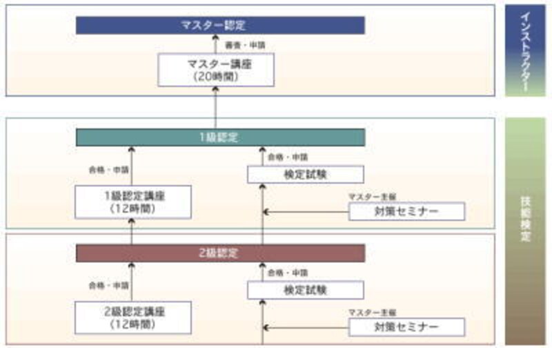 この違いは自動車免許でいうと、認定講座が公認教習所、検定試験が免許センターでの一発試験と考えていただければ分かりやすいでしょう。認定講座は全国の認定教室(30ヶ所以上)で開講される講座に通い、修了試験を経て資格を取得することができます。じっくり学習されたい方は認定講座がお勧めです。