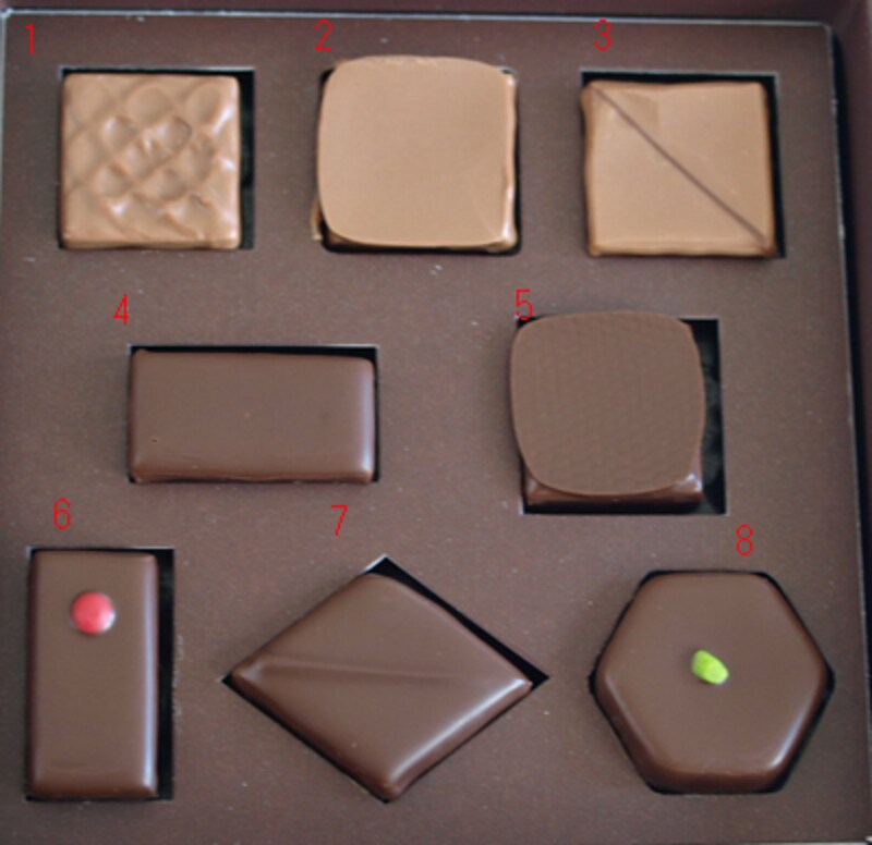 | *チョコレートの横に記載した数字は上記の食べる順番を表しています。 |