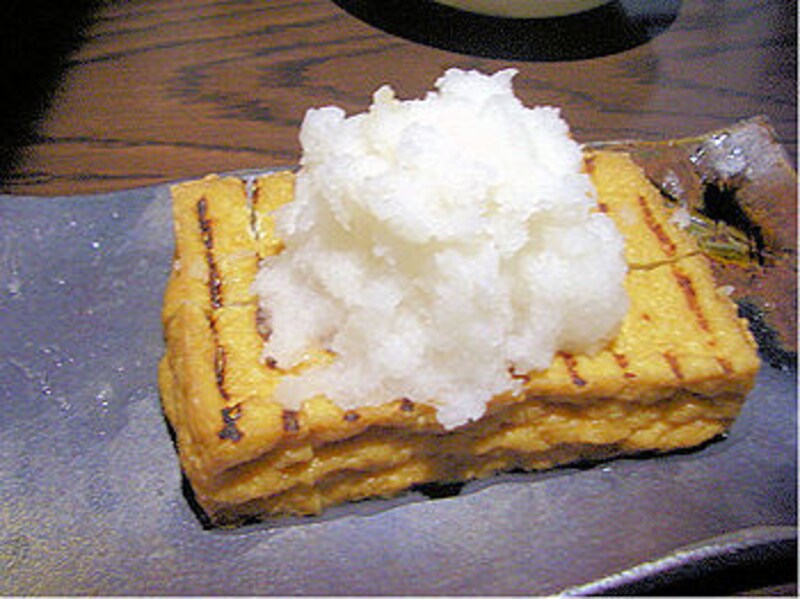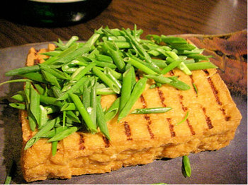 焼き格子で焦げ目をつけて焼いた厚揚げに、青葱をふりかけたものを「竹虎」。大根おろしをかけたものを「雪虎」となる。