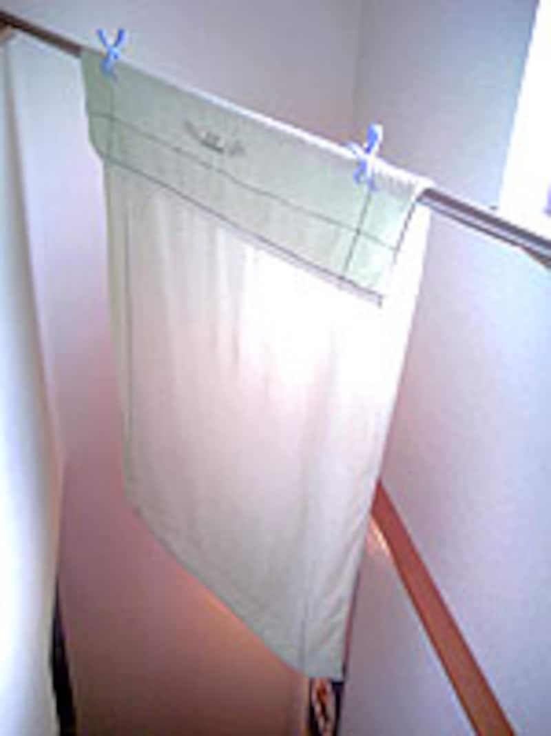 | 一方の端を短くして留めて干す"ちょいがけ"で乾きが早く。 |