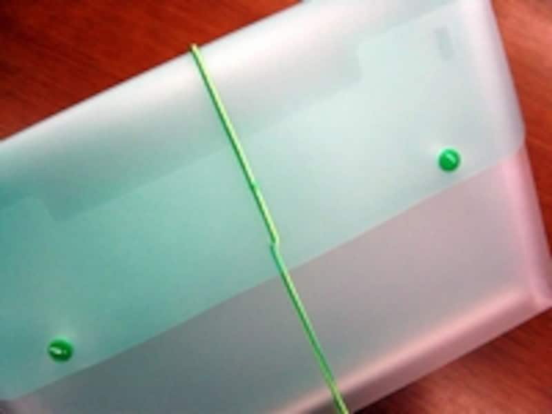 さらに3冊目のフタに穴を開けて、ゴム紐を通して輪っか止めにすると、スナップがはずれても安心です。 クレジットの明細書、郵便物、FAX、切り抜きなど分類して、尚かつひとまとめにしておきたい書類を整理する時に役立ちます。