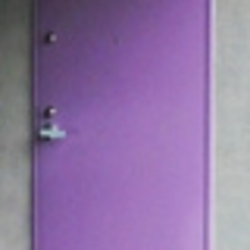 | 1. 環八の歩道と路地の角地に建つ。  2. 外壁はコンクリートにモルタル左官仕上げ。 3. コンクリート壁と有孔折板とガラスブロックのシンプルな表情の外観。 4. 路地側から見るとガレージの抜けが分かる。 背後の隣家に接する側は片持ちになっている。  |