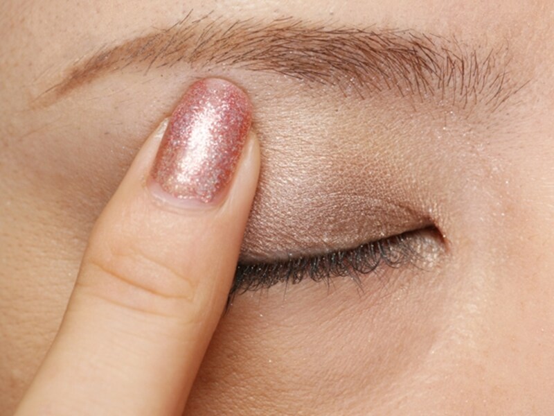 崩れにくくするためと、キレイなグラデーションを作るために、指でなじませます。6. ペンシルでアイラインを引く