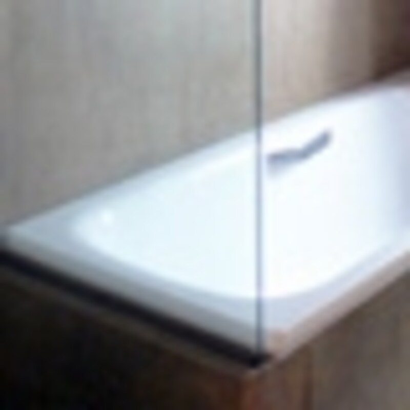 | 1. 玄関の床はモルタル仕上げ。大きな鏡は高さ2m、幅1m10cm、縁取りは30cmの合板。奥にはバスルームがある。 2. 仕事場から廊下を見通す。奥は洗面所とバスルーム。 3. 逆に洗面所から廊下の奥の仕事場を見通す。 4. 改装前の玄関。(改装前の写真は猪熊純撮影) |