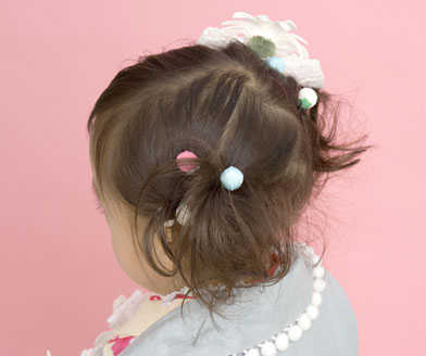 【GIRL】 3歳の結い髪 ふんわり散らしてガーリーに!2つ結びのおだんごスタイル