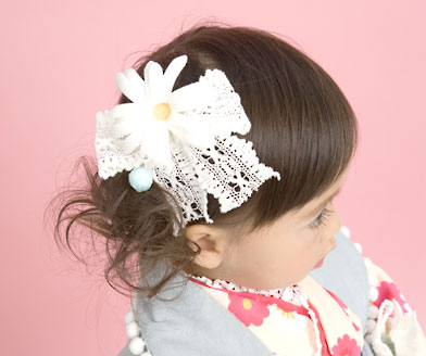 もう片方に小さめの髪飾りをバランスよく散らせば完成。