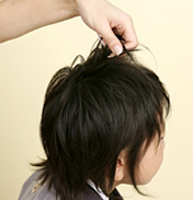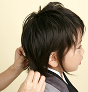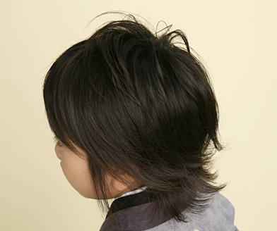 髪の短い男の子はシルエットに変化をつけると、ぐっとシャープな印象に。無造作に散らした毛先と、タイトにまとめたサイドで、キリリとかっこよく仕上げましょう。毛束を少しずつつまみながら、ワックスでニュアンスを出していくときれいにまとまります。