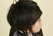 男の子なら長めのバンダナやスカーフを使ってひと工夫。おでこに巻いて前髪をふんわり散らせば、元気なサムライルックに変身します。