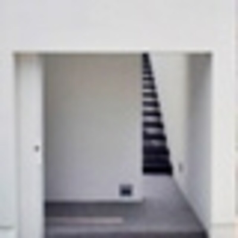 玄関から直角に曲がると、本棚が造り付けになった廊下になっていて、トイレと洗面室とバスルームにたどり着きます。ここはフィックスのガラスとガラスの扉で仕切られているだけなので、一室空のようです。さらにその先のガラス窓を開けると、セカンドテラスが現れます。水回りを経由して奥庭まで接続される回遊性のあるプランとなっています。
