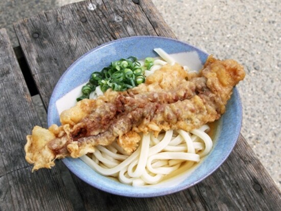 田園風景を見ながら楽しむ、がもううどんの讃岐うどん(画像)