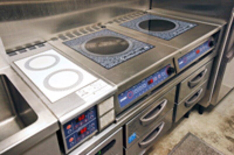 | 業務用IH調理器が2口。厨房はコンパクトで使いやすい設計です。 |