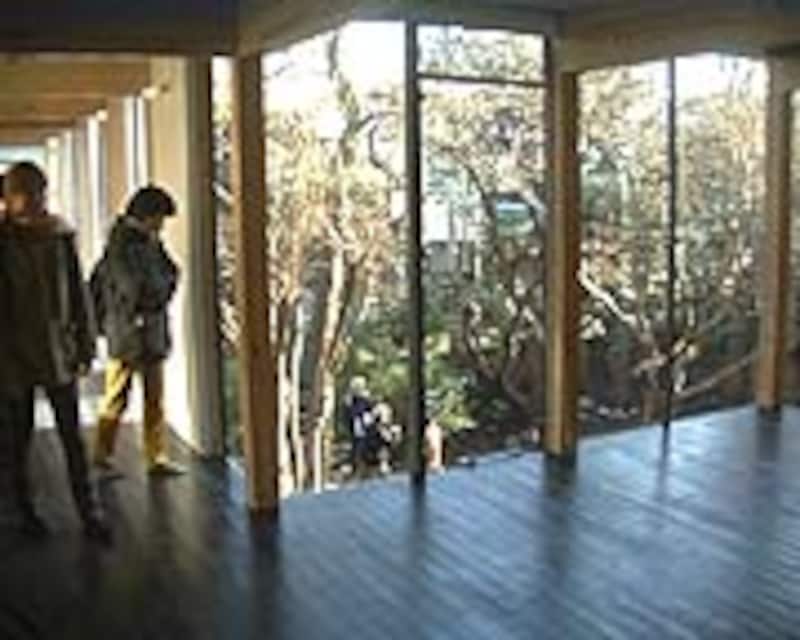 また、古谷さんの言葉にもあるように、縦長のプロポーションの壁とガラスが同じリズムで連なる構成は、まるで庭の木々と四季折々の情景を内部に取り込もうとしているよう。う~ん、だから美術館に迷い込んだような気がしたのかな。