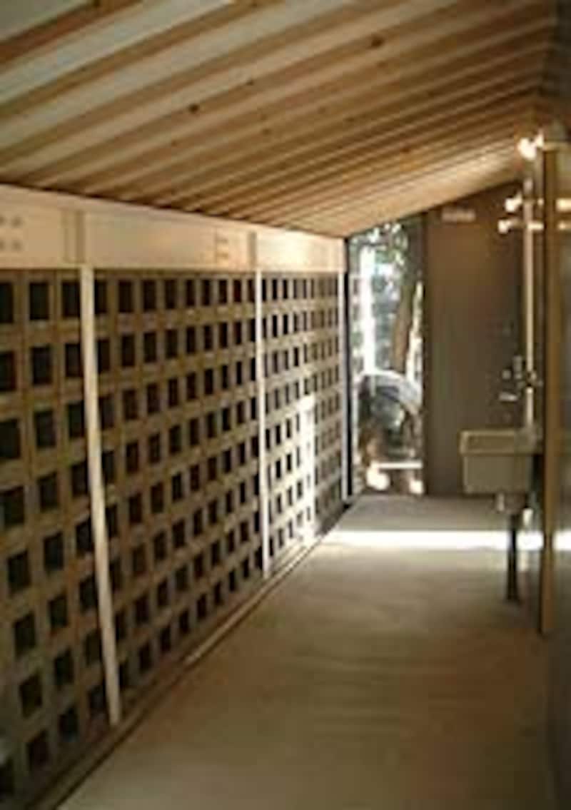 玄関を入ってすぐが大きなリビング、右手に寝室。それを取り囲むように勾配屋根の下屋があり、アトリエ兼倉庫やバスルームなどに振り分けられています。2階は大きな開口部を持つ寝室が2つ。しかし通常の家のように仕切はなく、あくまでもプラスチック製の簡易ドアで仕切る1室空間といえるでしょう。