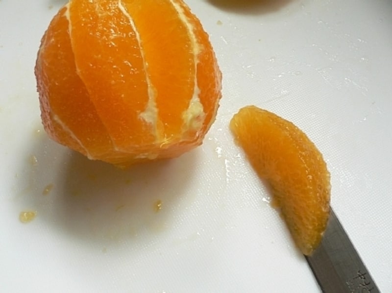 - これで、どこにも皮がついていない、オレンジのきれいな切り身ができます。