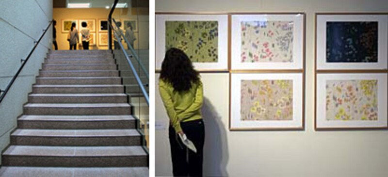 | (左)「ヨーロッパ最後の港」作:上野リチ、所蔵:京都国立近代美術館、(右)会場風景。 |