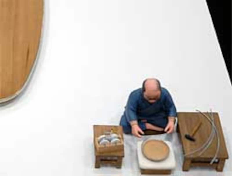 | 職人さんのミニチュアの隣には美しい木目の・・・・・ (写真をクリックすると画面が拡大されます。) |