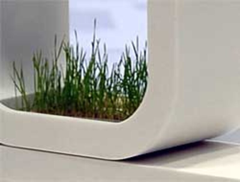 メタフィス「プランター・ファクトリー」 本来は写真とか絵画をはめて壁にかける額を使って、「大きく広がる草原風景の一部を切りとって、室内に小さな草原を持ち込んだ」というコンセプトがとても日本らしいではないか。デザインは村田智明。 METAPHYS