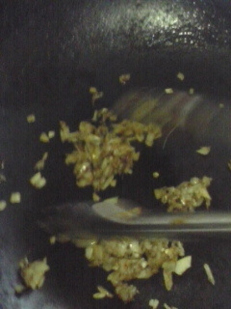 - 色が変わってきて、焦げるか焦げないかのところで中~弱火にします。